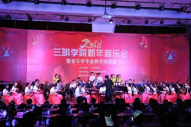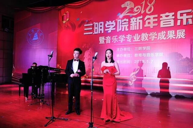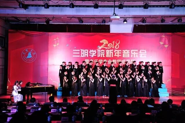 1月7日晚,2018年三明学院新年音乐会暨音乐学专业教学成果展在行政附楼报告厅上演。校领导兰明尚、刘健、赖锦隆、廖景榕、张君诚、吴龙、詹学齐,市政协副主席许清华、,梅列区、三元区、清流县、宁化县、建宁县、泰宁县、沙县、尤溪县等校董事会成员单位领导,市教育局领导,三钢集团领导,、三明市各中小学校长代表、校友代表及千余名师生欣赏了这场由我校教育与音乐学院师生演绎的音乐盛宴。