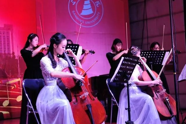 爱家乡、爱山河,爱传统、爱经典,爱我们伟大的祖国、爱我们奋进的时代,……二胡齐奏《山乡美》、弦乐重奏《瑶族舞曲》与《天边》、唢呐独奏《正月十五闹雪灯》、男声独唱《我爱五指山我爱万泉河》、女声独唱《我爱你中国》、男女二重唱《让我们携手同行》,曲曲深情、声声真爱,激荡着师生拥抱新时代、逐梦新征程的心声与豪情。