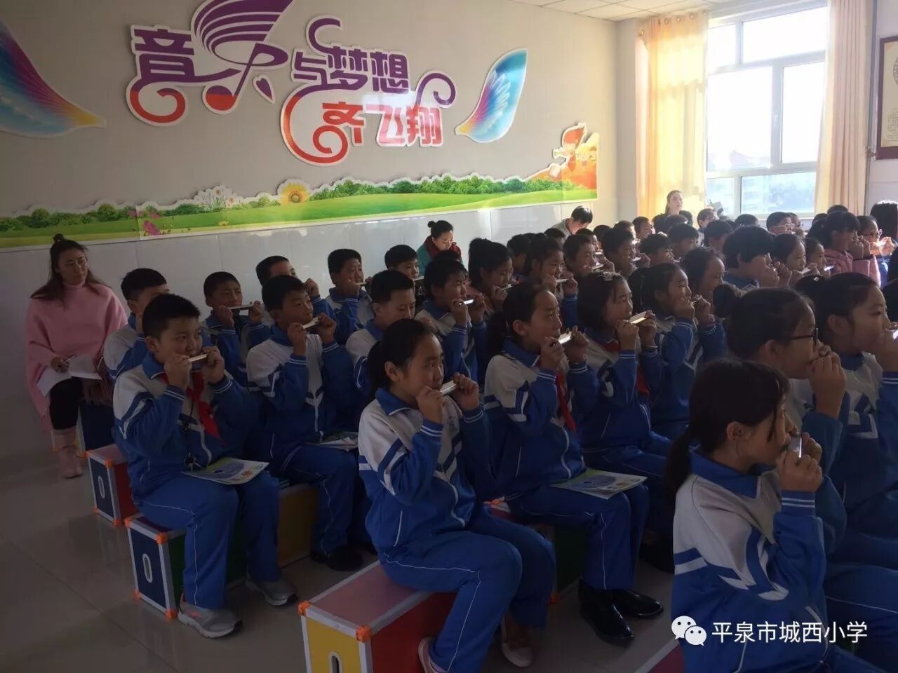 四五年级开设口琴教学。