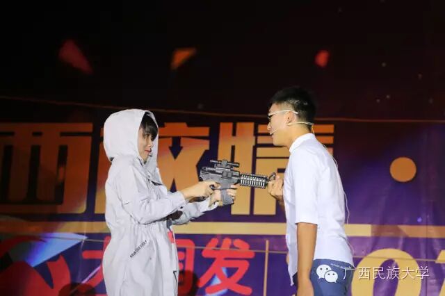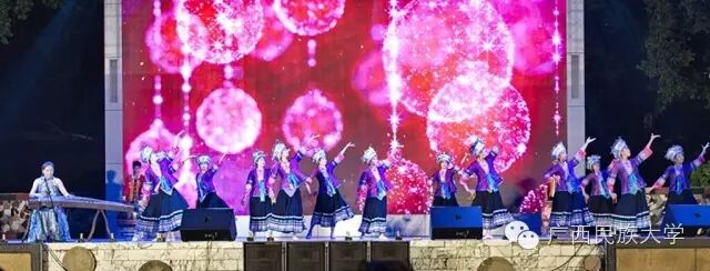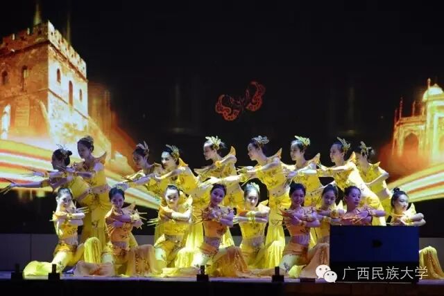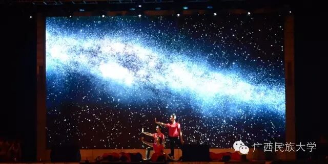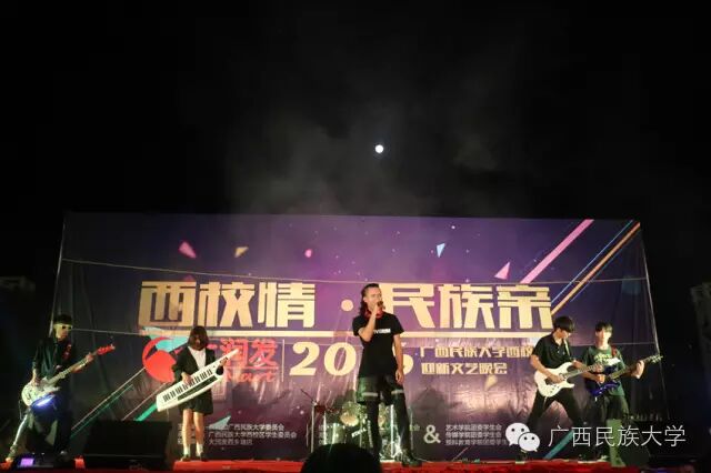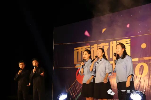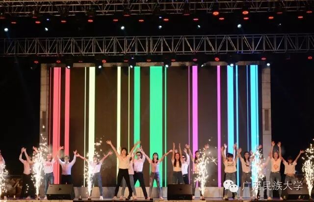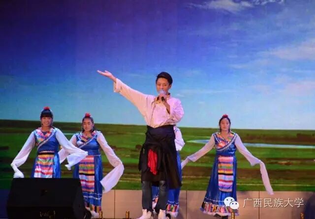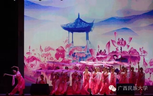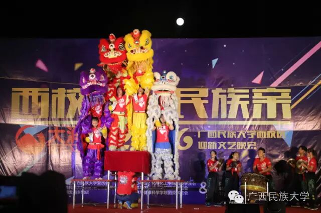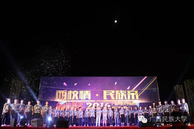 2016年10月15日和16日,2016级迎新文艺晚会分别在东校区灯光球场和西校区李宁田径场举行。由各学院学生代表带来的合唱节目《民大欢迎你》,真挚的歌词向2016级新生表达了民大这个温暖大家庭对他们的欢迎。演唱者身后LED显示屏中的沙画不停变换,从收到录取通知书,到开往南宁的火车,再到我们熟悉的校门,配合着舒缓的歌声使得表演更具有打动人心的力量。由艺术学院翁鹤老师带来的《滚滚长江东逝水》以低沉浑厚的美声唱法为台下观众诠释着歌曲中所饱含的洒脱与豪迈。由东南亚语言文化学院带来的舞蹈《水墨风雨》,一上场便深深吸引着观众们的眼球。粉白裙装,轻擎纸伞,裙摆曼妙灵动,舞姿摇曳,伴随着不断变换的灯光,轻柔的音乐……让现场观众仿佛置身江南水乡,期待邂逅那雨巷中撑着油纸伞如丁香一般的姑娘。互动环节的《神曲嗨翻天》,让理学院的同学们向现场观众展现了其与众不同的一面,他们一改以往认真严谨的理科生形象,为大家带来了将《The fox say》和《江南Style》等神曲串烧而成的舞蹈,耳熟能详的神曲搭配活泼动感的舞蹈,瞬间活跃了现场气氛。被誉为“壮乡百灵鸟”、广西“刘三姐”的苏燕玲教授演唱歌曲《多谢了》。苏燕玲教授优美嘹亮的歌声使得现场成为了歌声的海洋,表达了壮族人民热情好客的性格。由藏族学生扎西次仁带来的歌舞节目《格桑拉》。“格桑”在藏语里是幸福的意思,所以藏族人民将格桑花称作幸福之花,象征着爱与吉祥的圣洁之花。整首歌曲以藏语演唱,展现了藏族独特的语言文化魅力,拉进了各个民族之间的距离。由教师代表带来的节目《绣球花开》一上场便让台下师生观众眼前一亮。老师们在学习和生活上不断帮助我们,没想到身着民族服饰的老师们跳起舞来也绝不含糊呀。《美丽的越南》是由越南留学生带来的独具越南异域风情的歌曲,尽管许多同学不甚了解越南语歌词的明确意思,但是大家都能从歌曲中体会到越南是个美丽且神秘的国度。大学生艺术团带来的舞蹈节目《金色指甲》,充满异域风情,姑娘们微笑的脸庞、金闪闪的服饰和细长的指甲,吸引着全场的目光,仿佛我们都置身于那个神秘的国度,感受到了别样的文化。二胡、琵琶、萧、提琴,艺术学院为大家带来一首中西乐器合璧的乐曲。各具特色的乐器融合在一起,相互配合也似争锋。乐曲的旋律昂扬,热情洋溢,锣鼓铿锵有力,有着浓郁的中国特色。《风情东南亚》 的节目展现了部分东南亚国家的传统民族服饰,活泼的舞蹈以及热情洋溢的表演感染着现场的气氛,不仅向观众展现了东南亚的风情,也体现出了民大有着多元化、国际化的校园文化氛围。文学院小品节目《寸草春晖》,讲述的是一位母亲不远千里来南宁看望刚上大学的儿子,同时儿子向母亲介绍自己的女朋友从而引发一系列的误会和矛盾,最终母子俩互相坦诚心扉,儿子明白了母亲的苦心的故事。小品前半段表演者以诙谐幽默的语言和动作引得台下笑声不断,小品的后半段表演者真切的情感流露,每一句话都直击台下观众的内心。晚会最后一个节目,由大学生艺术团带来的舞蹈《时间》,把对于时间的感慨浓缩在一首歌里,通过变化的舞步舞姿体会时间的悄然流逝,同时也提醒同学们要珍惜大学时光。伴随着锣鼓的响声,四只可爱又不失威武的狮子用活灵活现的精彩表演,拉开了晚会的序幕。《老师我想你》被艺术学院的吴巧老师演绎得淋漓尽致,深情地表达对老师怀念与感激之情。艺术学院的同学身穿民族服装为观众带来的一支《马背上的民族舞》,展现出草原上的人民质朴豪放,热情奔放,充满激情的性格。歌曲:《只想请你看着我》和《the hell song》预科教育学院乐队表演的《只想请你看着我》和《the hell song》更是直接将现场气氛推上高潮,表演者炫酷的装扮,主唱激情的歌声,和其他成员动人的吉他声、琴声无不吸引着观众。无论是台上还是台下都气氛高昂,观众纷纷高举手机闪灯光回应台上的表演。传媒学院的同学用丰满真挚的情感,表达了对祖国的一颗赤子之心,给在场的师生带来了精神上的鼓舞。化学化工学院的小品《教你谈恋爱》,语言诙谐搞笑,内容贴合当下大学生的生活,引发现场观众共鸣。2016级新生代表的合唱《相亲相爱》,在充满温馨友爱的歌声中,晚会圆满的落幕了。青春放歌逐星河,春华秋实书新篇。祝愿各位小伙伴在新的起点有新的收获,体验丰富的大学生活,展示自己的才华。