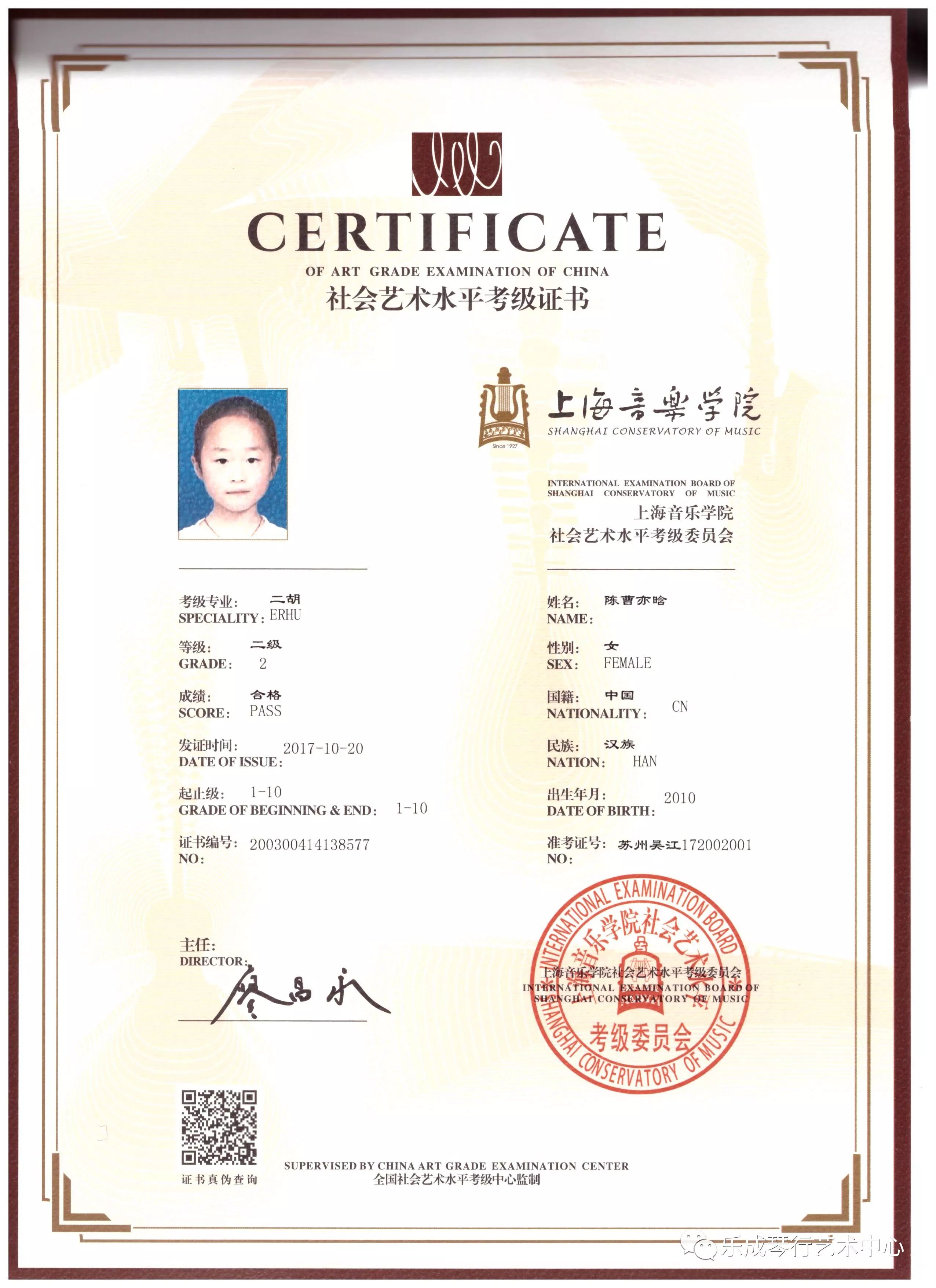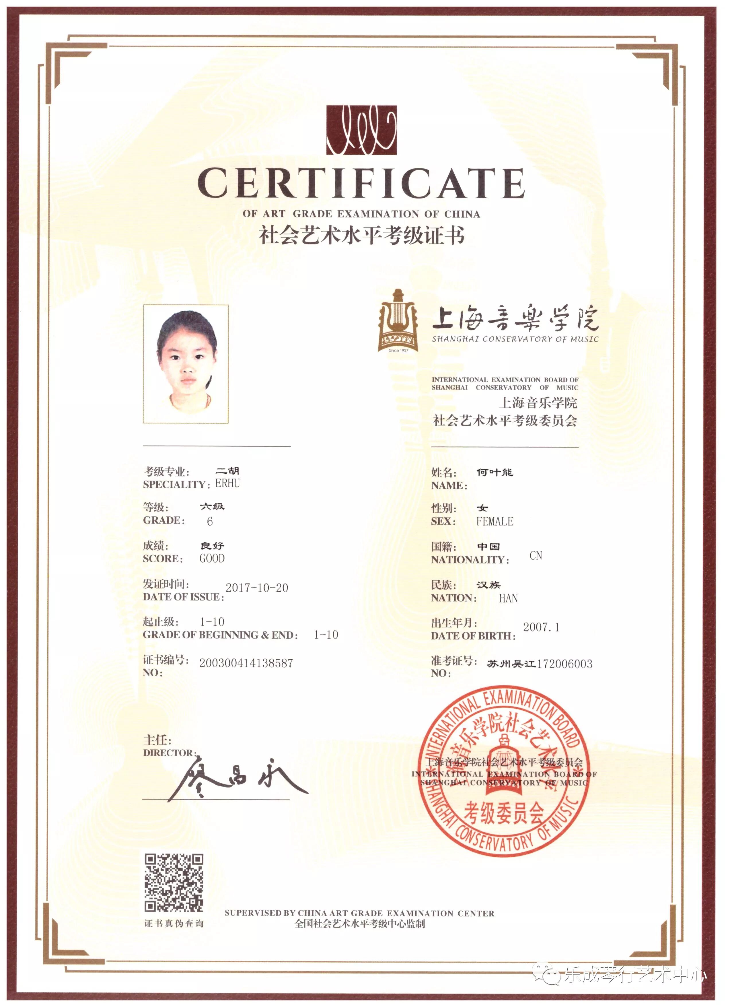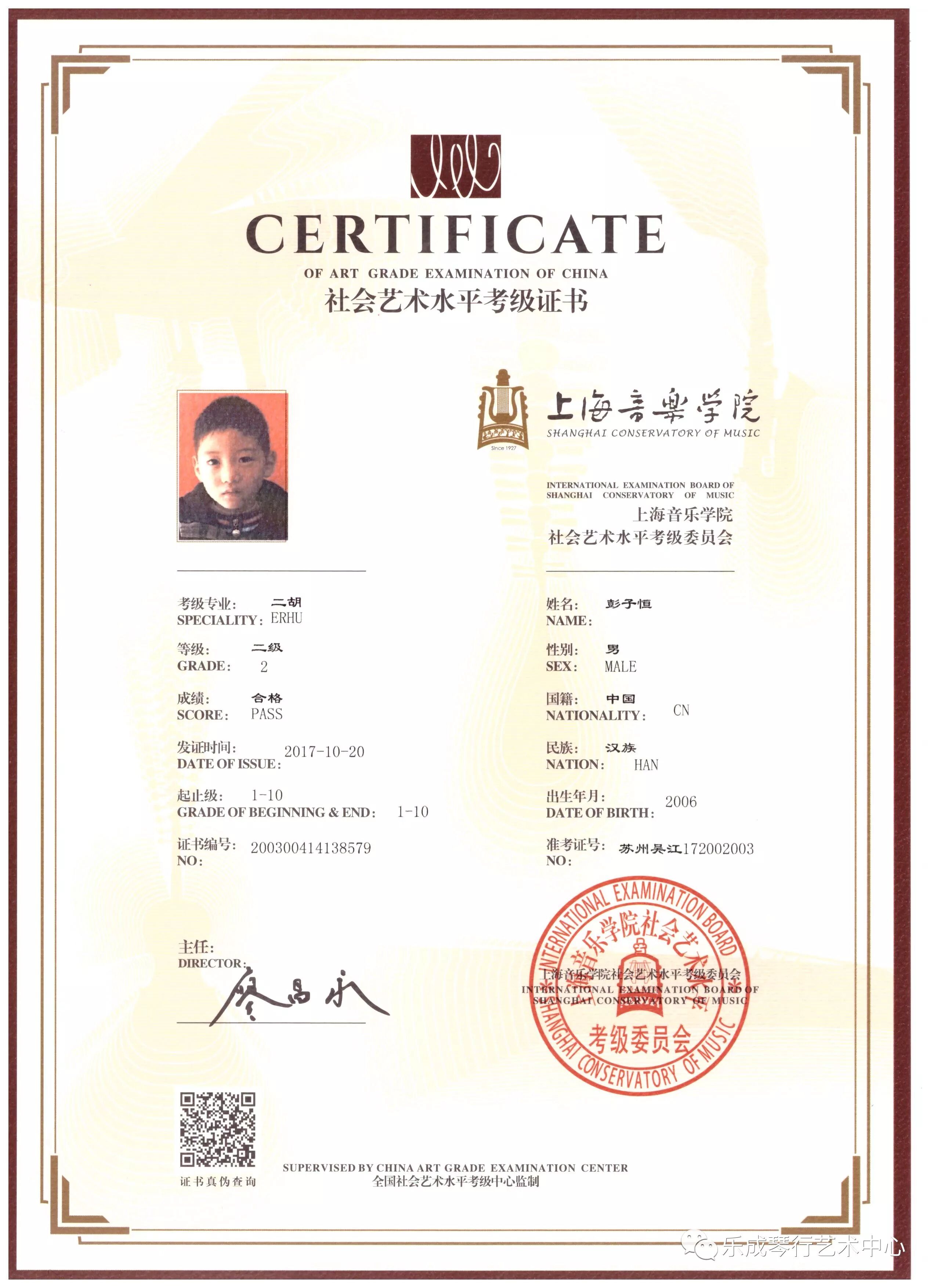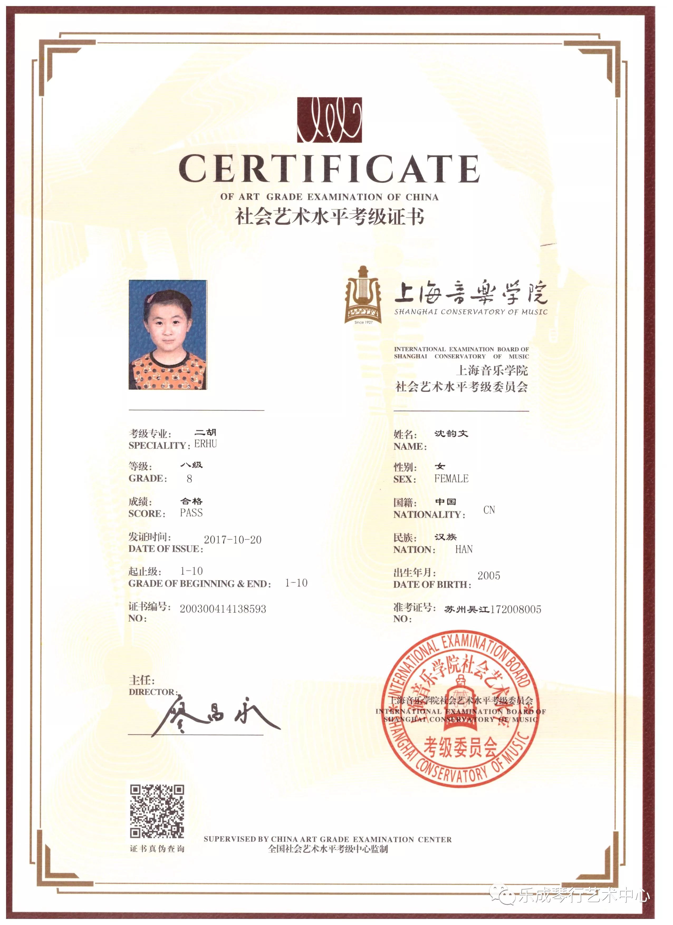 2017年乐成琴行学员通过上海音乐学院考级