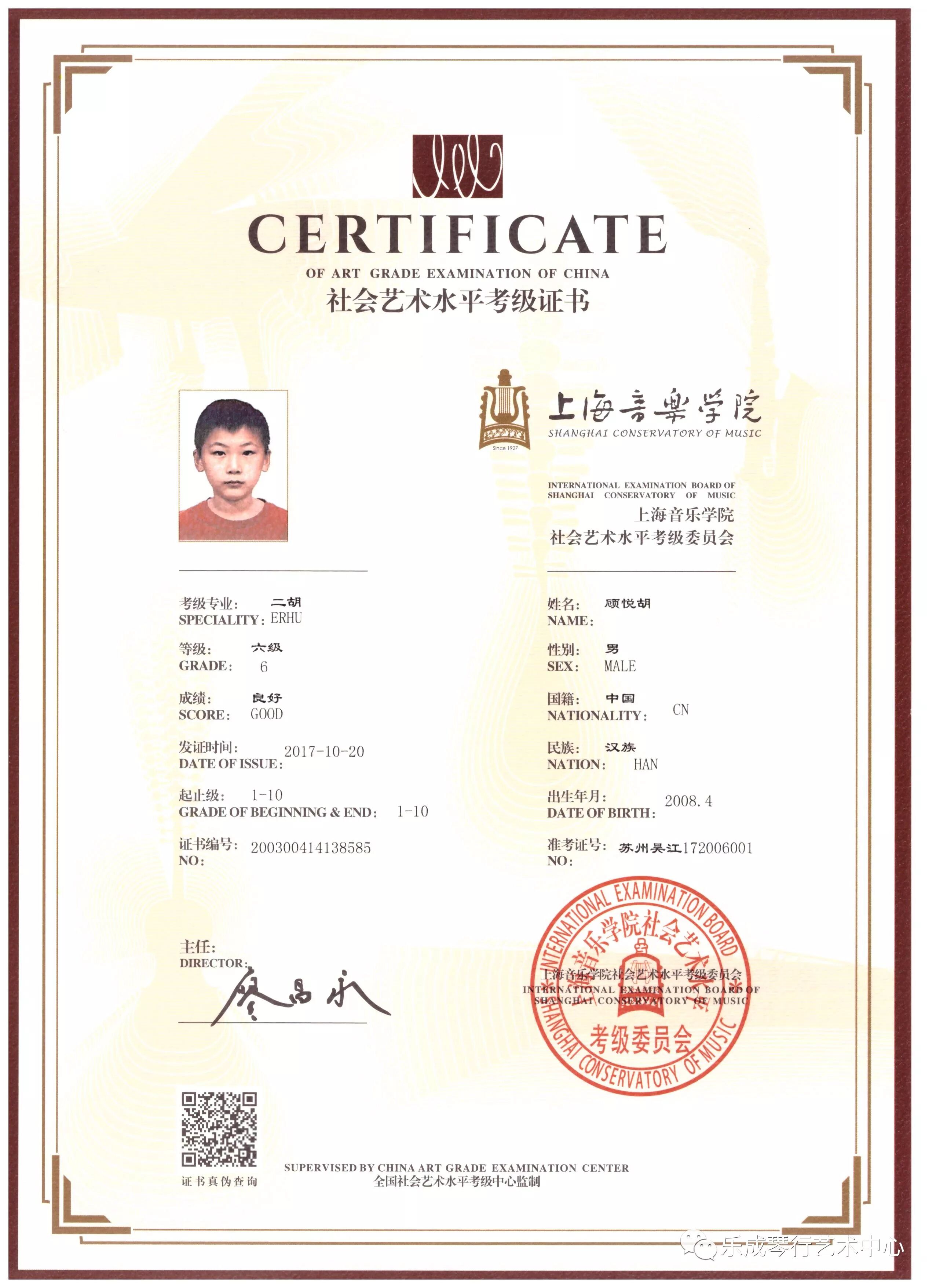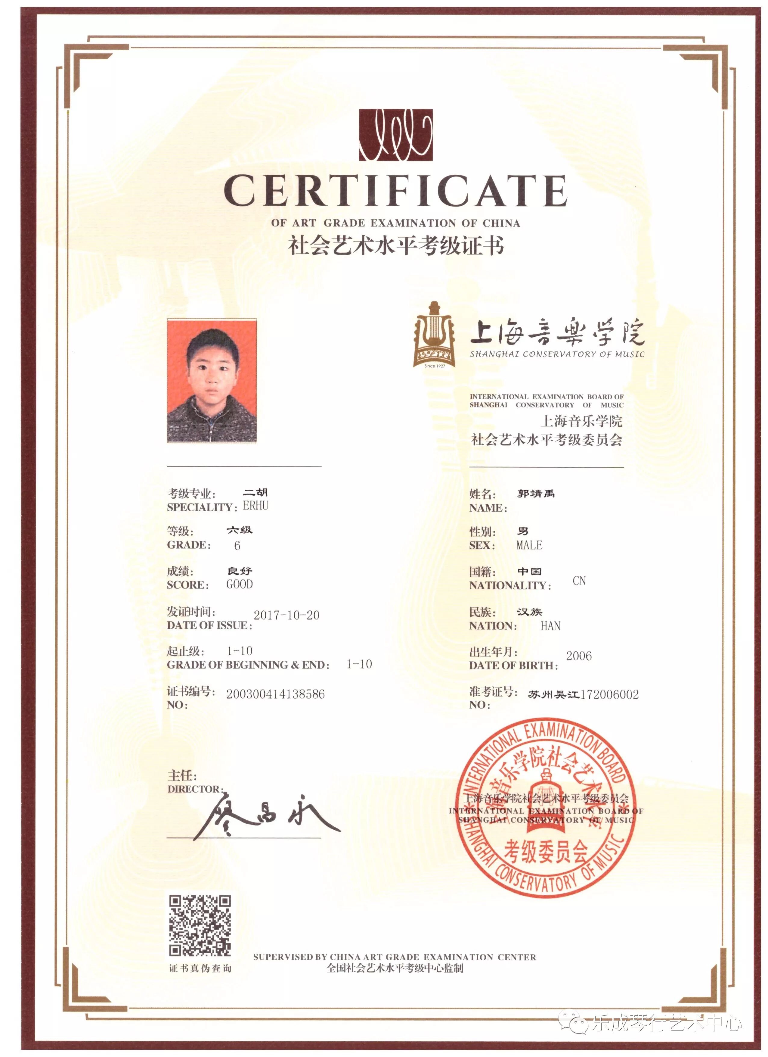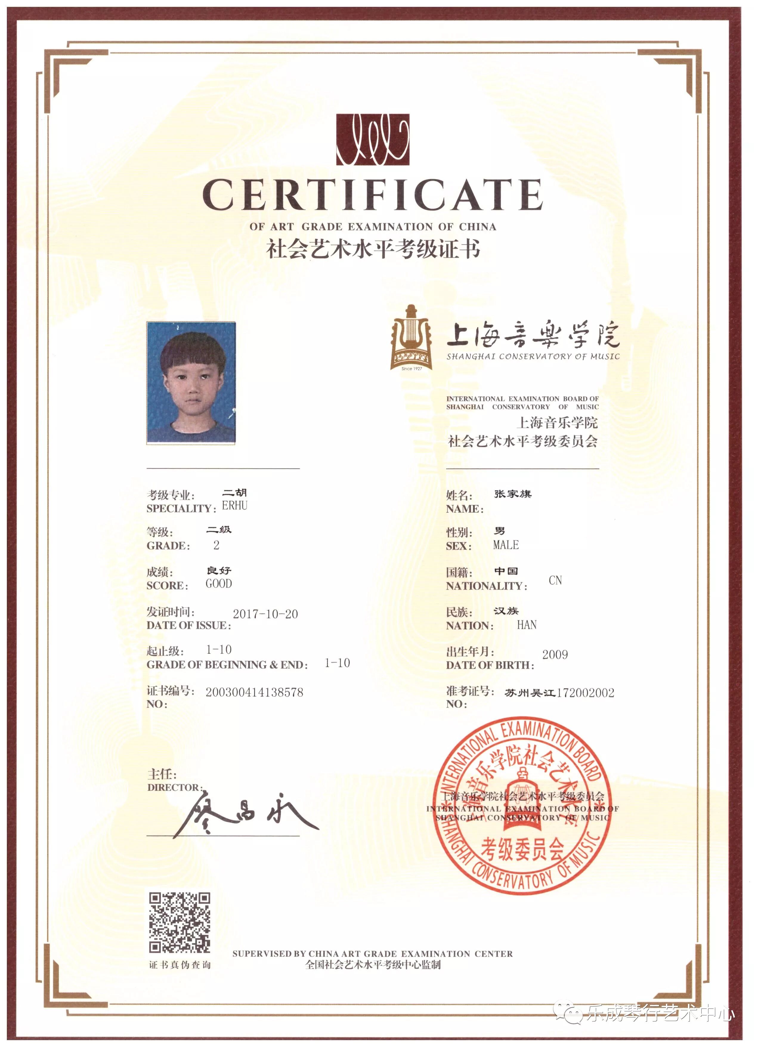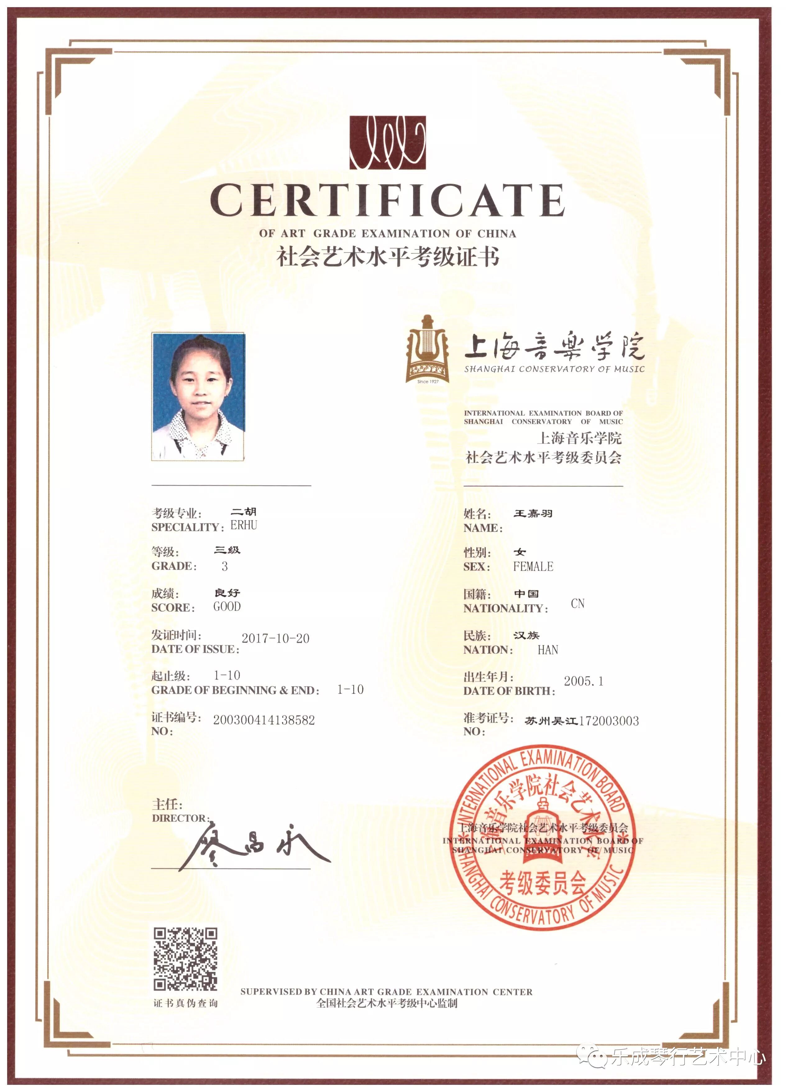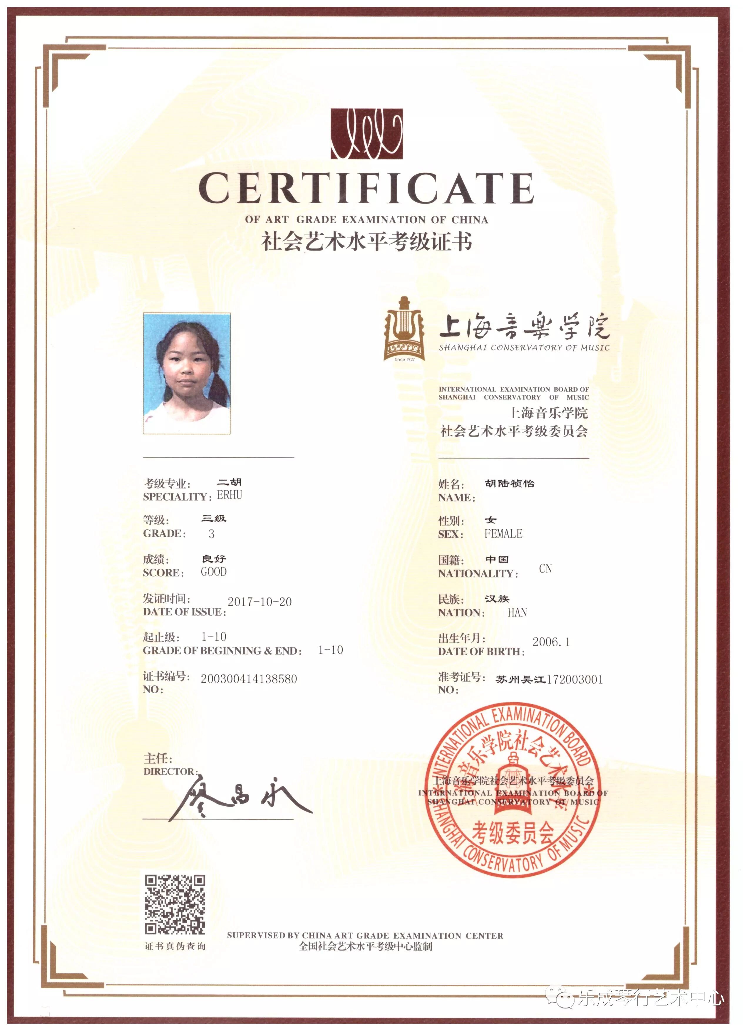 2017年乐成琴行学员通过上海音乐学院考级