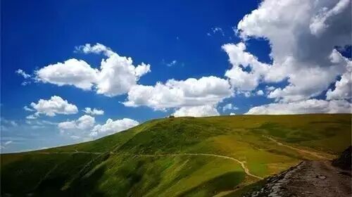 蓝天、雪山、白云、白塔、红墙、蓝瓦、青石路、石拱桥......