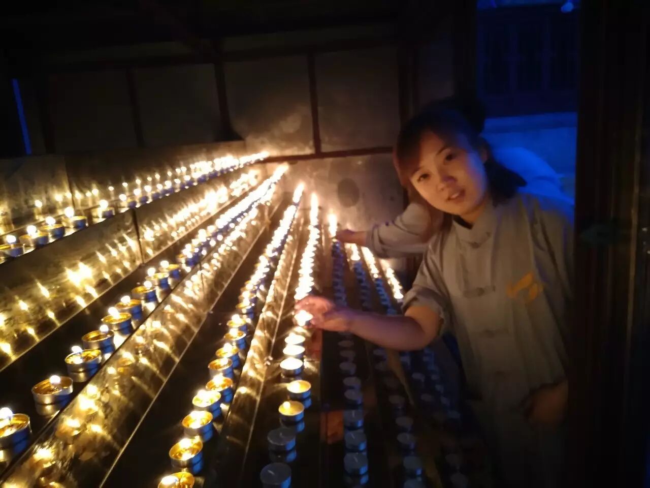 学佛精进:礼拜、供灯、祈福、参加寺院早晚课、手抄心经