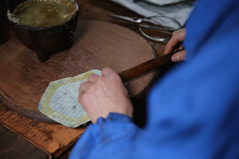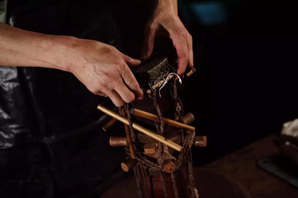 蒙皮环节,决定二胡的音色等关键,很多人用蛇皮,一来是其价格较为便宜,二来其鳞纹细密,但其质地较薄,易受气候、室温等因素的影响。
