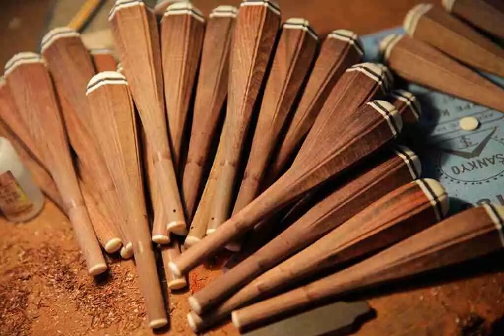 这大半辈子,封明君做了上千把胡琴,他做的音色极好,很多慕名而来的购琴者和调琴者不少,为此他总结了八个字:选材、工艺、造型、手感 。