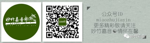 声明:音频视频文字资料来源于网络,本平台仅作分享,请勿 商用,否则一切后果与本平台无关!相关版权归原作者所有,更多精彩欢迎关注『妙竹嘉音』微信公主号,您可以通过微信搜索『妙竹嘉音』或者扫描下方二维码即可关注。↓↓↓