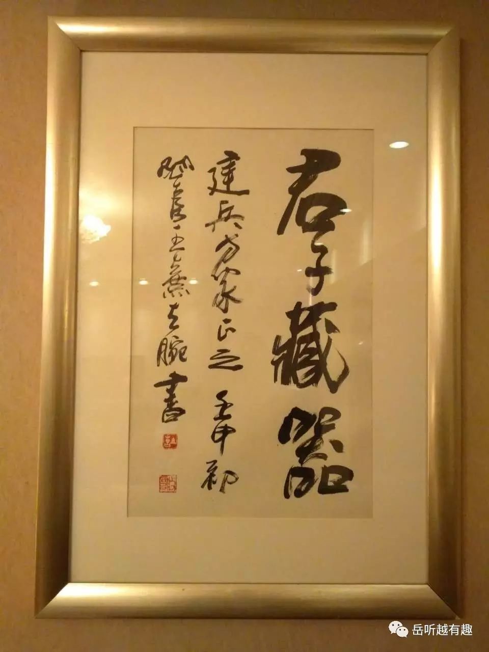于老师家中的一幅左手书法作品《君子藏器》
