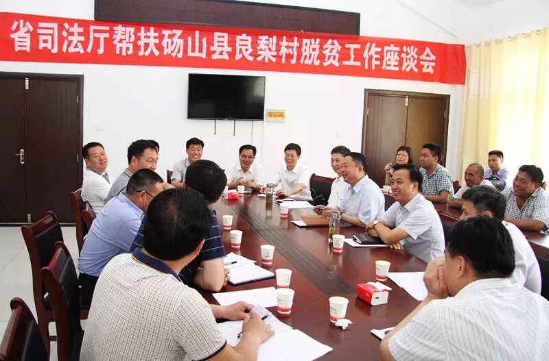 今年6月9日,省司法厅党委书记、厅长时侠联,副厅长张国安赴砀山县良梨村开展扶贫调研,实地参观省司法厅援建光伏发电项目和冷库项目,认真听取扶贫攻坚工作情况汇报,走访慰问结对帮扶贫困户,为安徽司法行政系统擂响了如期打赢对口扶贫攻坚战的战鼓。