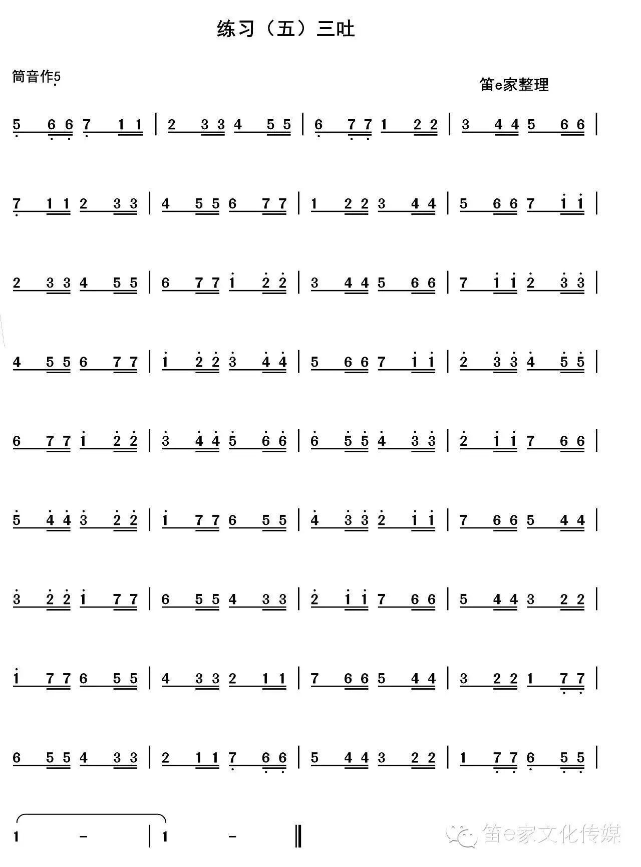 本条练习曲为琶音音阶三吐练习。演奏时需要吐音清晰,富有节奏韵律感