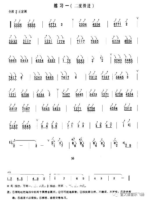 注:升高音1指法,开1、2、6孔;开一、二、三、六孔。