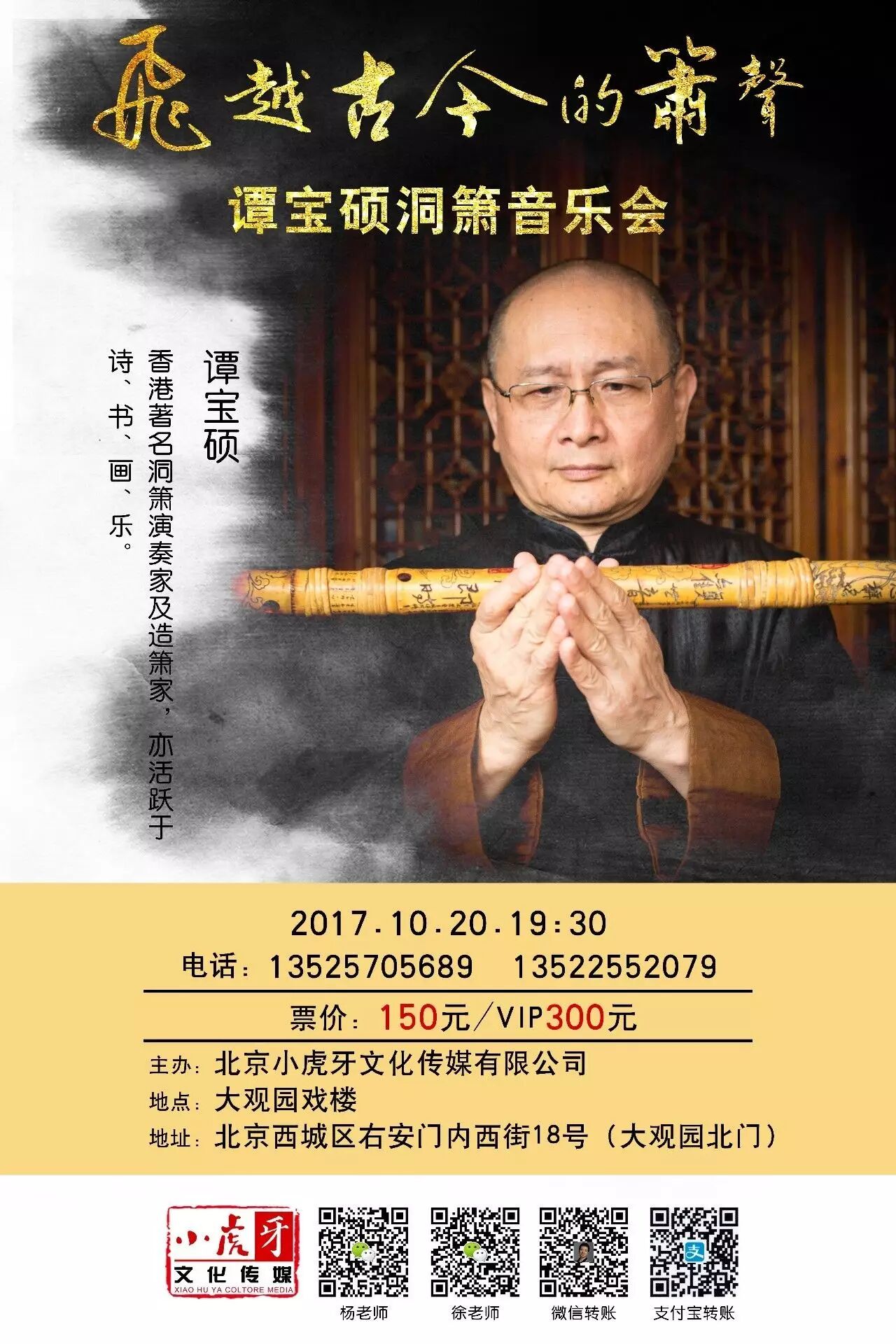 2017年10月120日,香港著名洞箫演奏家谭宝硕、北京音乐会,呈现诗书画乐,让我们相约北京,共同聆听、见证你我的箫乐情缘……