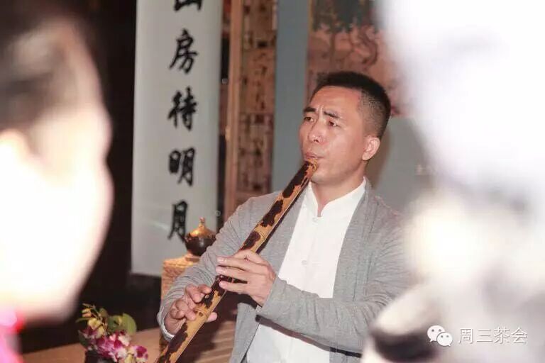 来自深圳段玉音乐工作室的笛箫演奏家段玉老师,着一身中式长衫,悠然自得,宛若无人,携几只若剑若箫的家什,仿如来自山林的一位仙剑奇侠。他以一曲清空飘渺的洞箫独奏拉开了活动的序幕。全场的茶友立即被这古远幽深的乐曲所吸引,神思沉浸在缥缈之中。段玉老师在演奏之后,不由得滔滔不绝地为大家介绍起箫的种类和区别。“南箫”“尺八”“洞箫”......真是箫里乾坤啊。中华民族的传统文化,在世界民族之林,也是顶尖的。