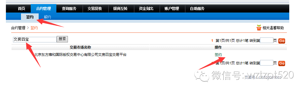 1:登录自己平安易宝账户,搜索文房四宝 进行签约