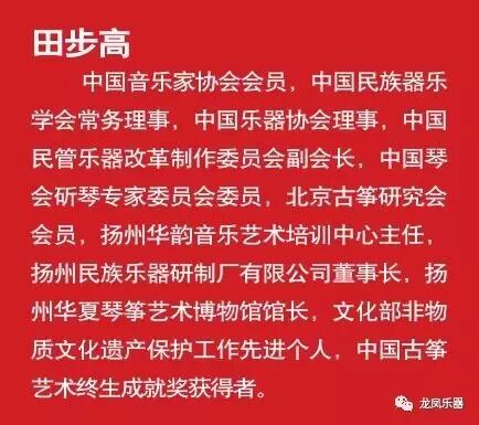在2016年10月24日龙凤之夜琴筝音乐会上,中国民族器乐学会副会长毕可炜向田步高、田泉父子颁发“为中国民族器乐发展特殊贡献奖”和“为中国民族器乐卓越传承贡献奖”
