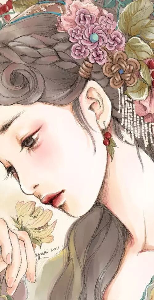 那时我头插金钗,面带微红的羞赧,在花丛中与你短暂相见。你知道我对你的情意,我知道你对我的爱怜,上苍可以作证。