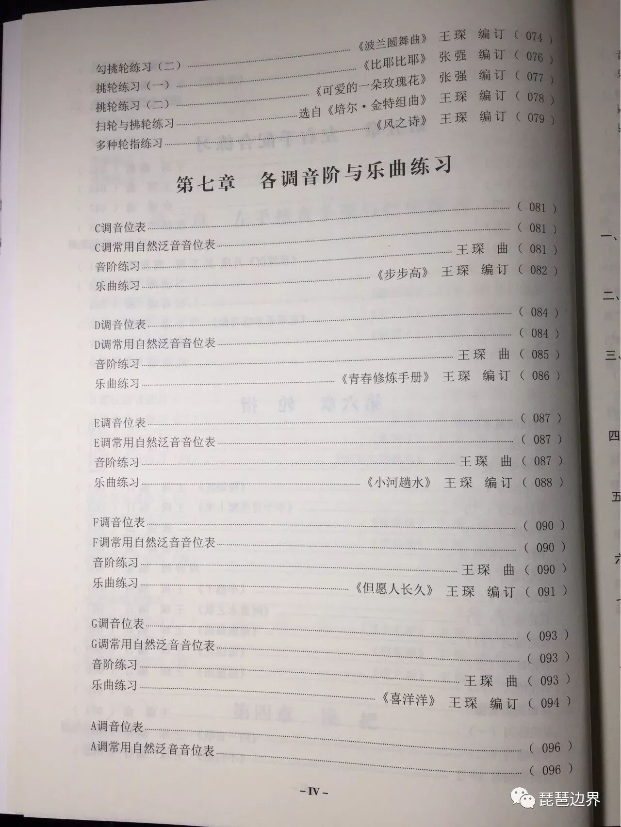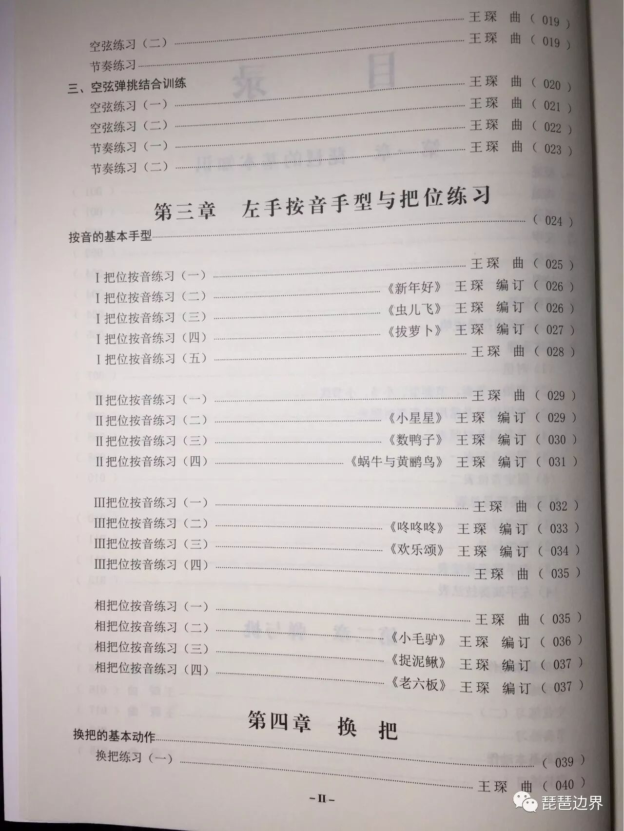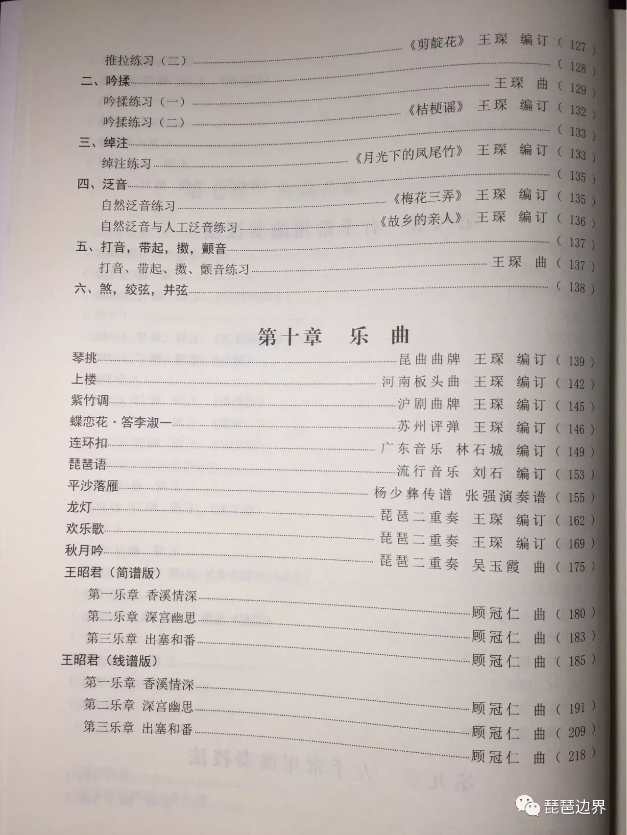 读、弹后感言:我爱收集、收藏琵琶教材,书橱满满的书,并非『叶公好龙』而是真心喜欢比较、研究,学习。这本书很『新鲜』富有时代感,有现代小学生喜爱的歌曲《青春修练手册》还有西方古典音乐格里格的《培尔.金特组曲》早晨,我听过王范地老师家的固话里也播放着这首音乐,我从小就特别偏爱此曲,因此印象很深。另外,书中有许多老前辈、教授、老师编写的练习曲与作品,如:林石城、陈济略、邝宇忠、刘德海、张棣华、吴玉霞、张强教授等大师们的作品,还有作曲家顾冠仁的协奏曲《王昭君》简谱版与五线谱版的。真是出自专业的琵琶演奏家编写的浓郁特色。我可以用『尊敬』『敬业』两词概括形容。难能可贵的是我看到陈济略教授的练习曲,陈前辈是我老师的老师顾培幼教授的老师,听顾老师说过陈前辈的故事,我觉得他很了不起,写过许多关于『弹』『挑』及快速弹奏的练习曲,我对此书的敬佩之心油然而生。