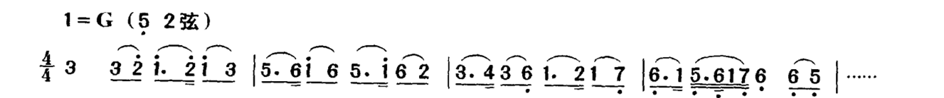 语调呈向下滑动状态的称为下挫,如《二泉映月》的第一句: