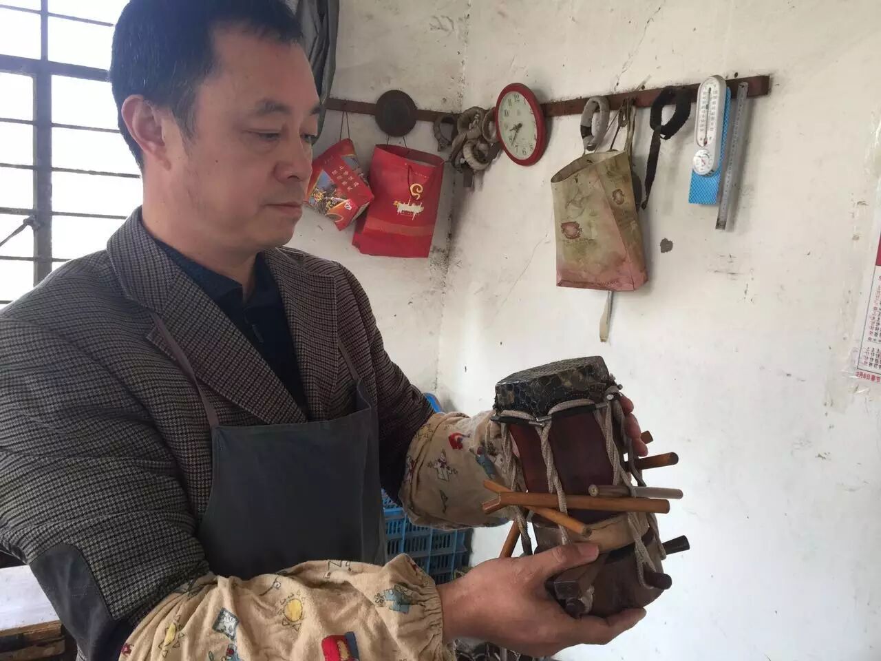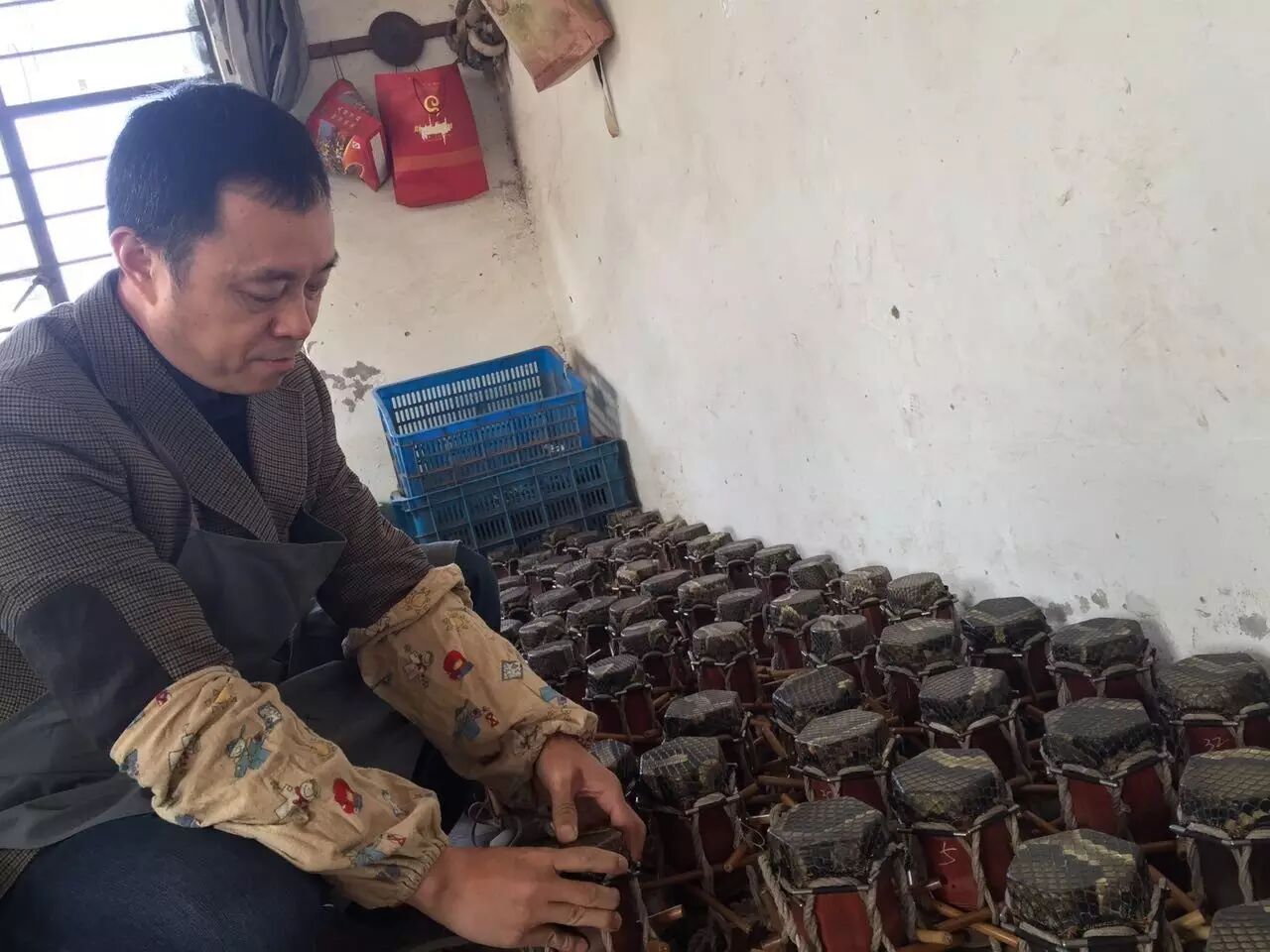 现在万老的两个女婿黄建洪、卜广军负责琴坊的里里外外,两个人也是琴坊第二代二胡制作大师。
