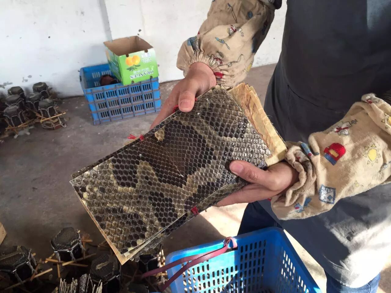黄建洪说,评价一把二胡的品质,主要看它的音色,而好音色主要靠蒙(蛇)皮。古月琴坊的蒙皮全部来自越南进口,选中的蛇皮有4、5米长,收购价在8000-10000元,可以蒙皮5把二胡。
