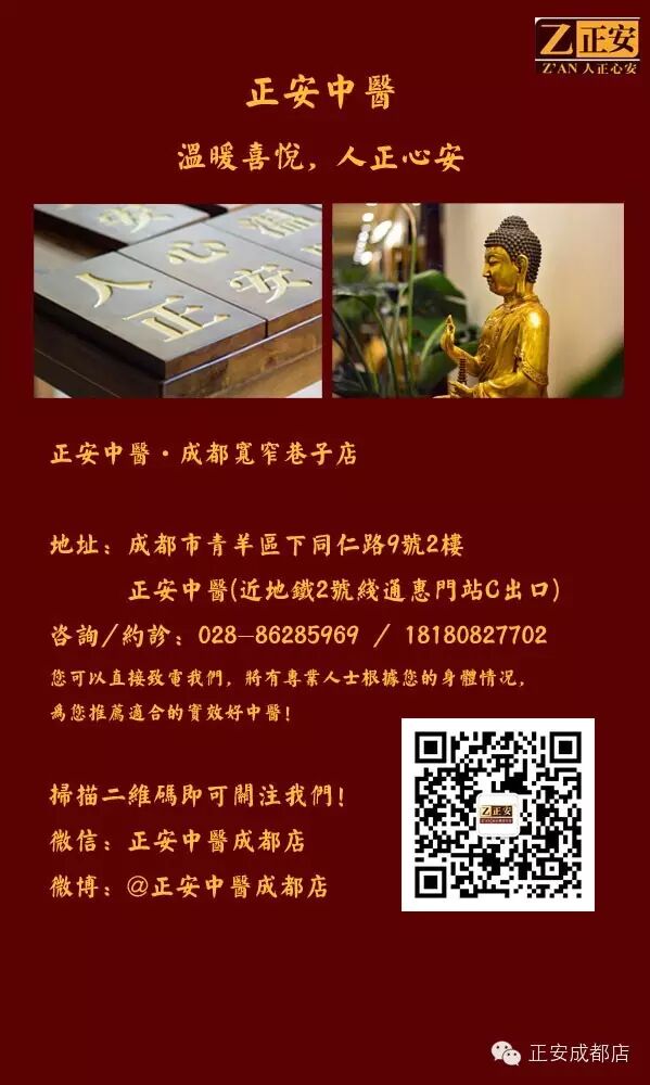 四川省成都市青羊区下同仁路9号2楼正安中医
