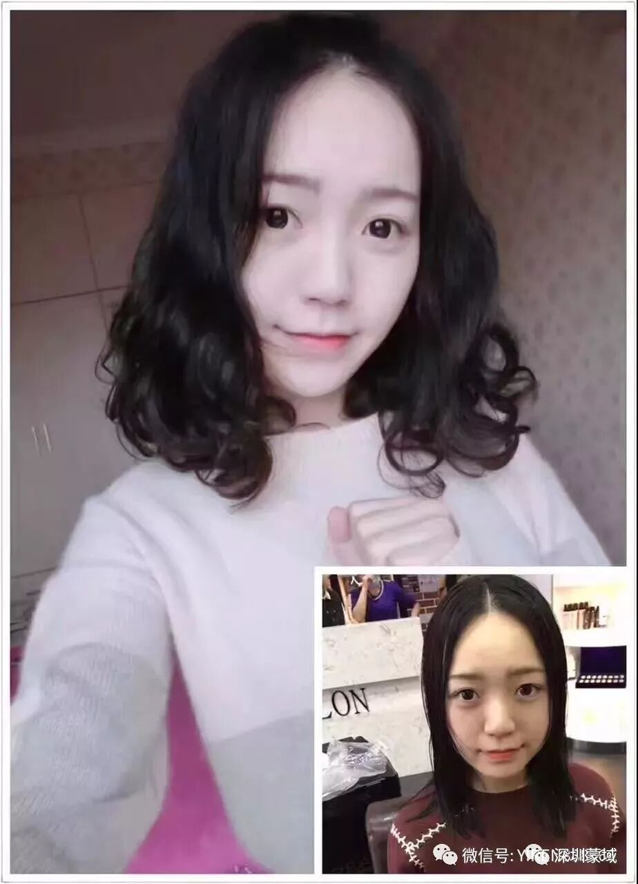 更重要的是,原先凌乱的分线,采取中分的方式显得更加干净利落,整个头发由原来的厚重,显得格外轻盈,增加了百分之百的回头率。