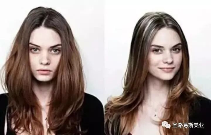 这个模特脸型偏长,下巴偏尖,原先的发型显得比较扁平,没有活力,而且还显得比较老气。
