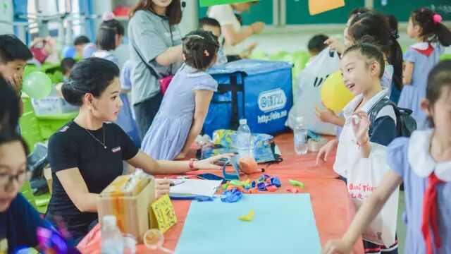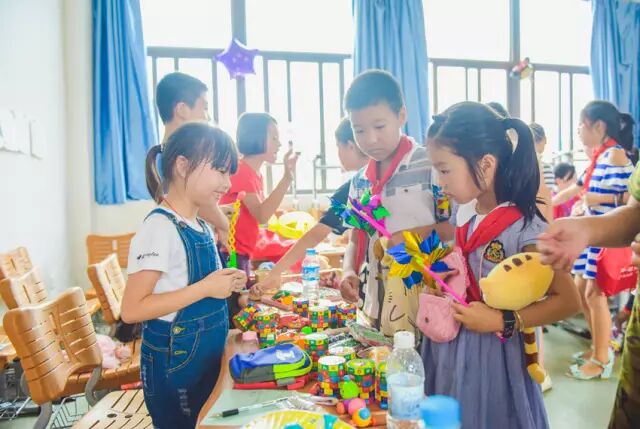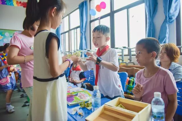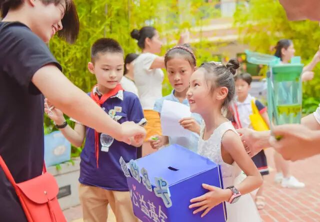在中心花园,我们设置了才艺展示区。孩子们通过才艺表演,赢取小伙伴们手中的代金币。每一枚代金币代表一元钱,根据最终收集的代金币数量,学校都将等额捐出相应金额作为公益基金。