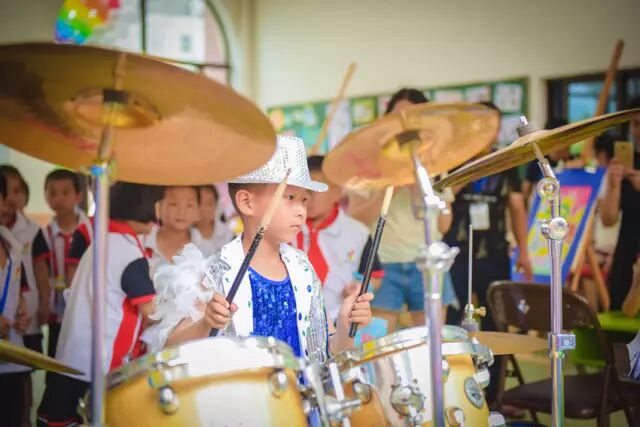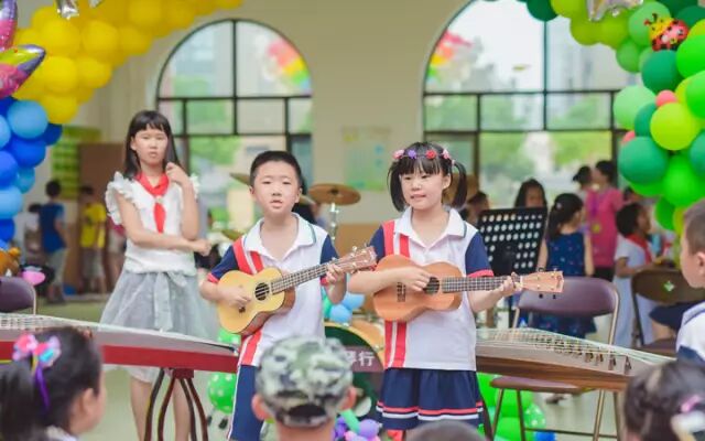架子鼓、乌克丽丽、古筝、巴乌、葫芦丝等乐器演奏不停歇。小小的舞台,带来大大的幸福感。
