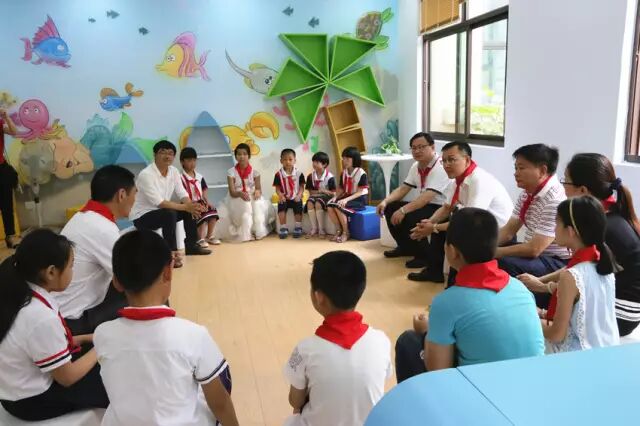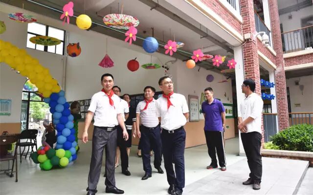 节日当天,高新区管委会常务副主任江智文带领社管局、南屿镇相关领导来到我校,为孩子们送上节日祝福。