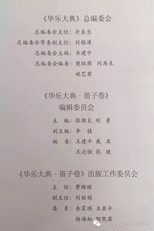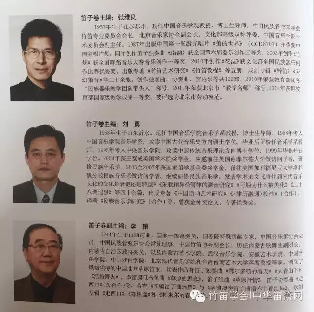 该大典是“十二五”国家重点图书出版规划项目,不是中国音乐学院、!中国几大音乐学院、各院校的民乐系就没有一位会执笔的?七位编委,张维良、戴亚、王次恒三位老师是笛子浙派宗师赵松庭老人家的弟子,李镇老师是黄尚元老师的弟子,王建平老师是张维良老师的学生,张健老师是张维良老师的侄子,刘勇老师是研究民族音乐学的。不可否认,宗师赵松庭对笛子界有着无可替代的贡献!但,偌大中国,笛子界各院校团体各流派就没有会写会编的一位了?!七位编委可敢说是编辑这个大典的专家权威?出来走两步,走两步。