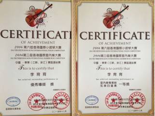 2014年获得香港维多利亚杯音乐比赛亚洲四重奏金奖和优秀教师指导奖。